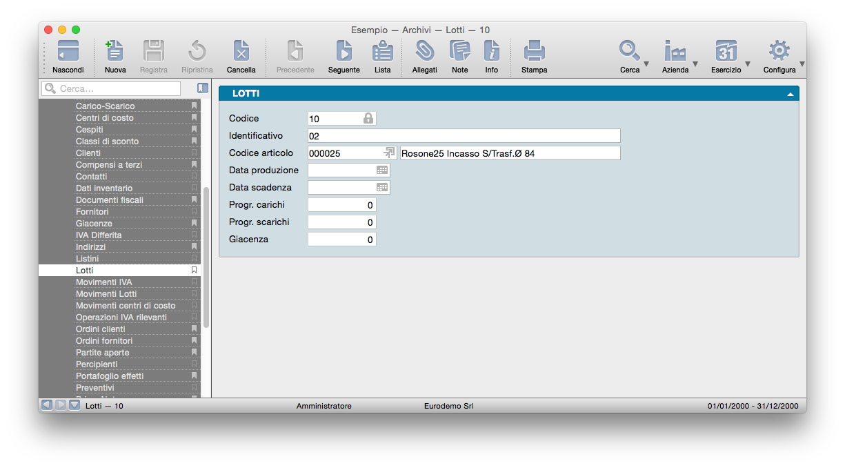La gestione e la movimentazione dei lotti e dei numeri di serie avviene in tempo reale durante la normale movimentazione della merce ed il programma fornisce stampe di controllo a supporto della gestione in oggetto.